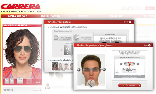 A partir d’aujourd’hui, sur carreraworld.com, il est possible d’essayer virtuellement les montures Carrera pour rendre l’interaction et l’expérience encore plus réaliste et vivante.